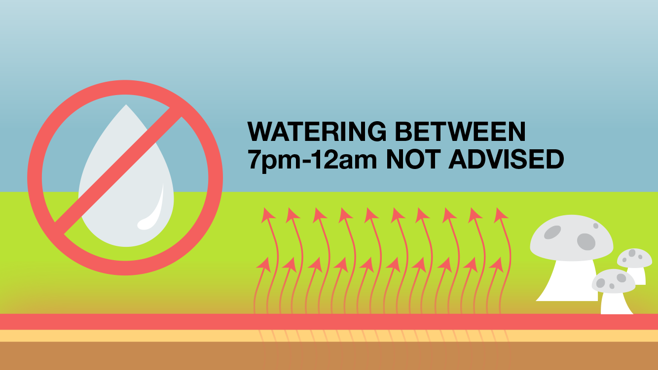 Watering between 7:00pm and 12:00am is not advised because the soil is still warm and will be more susceptible to fungus growth.
