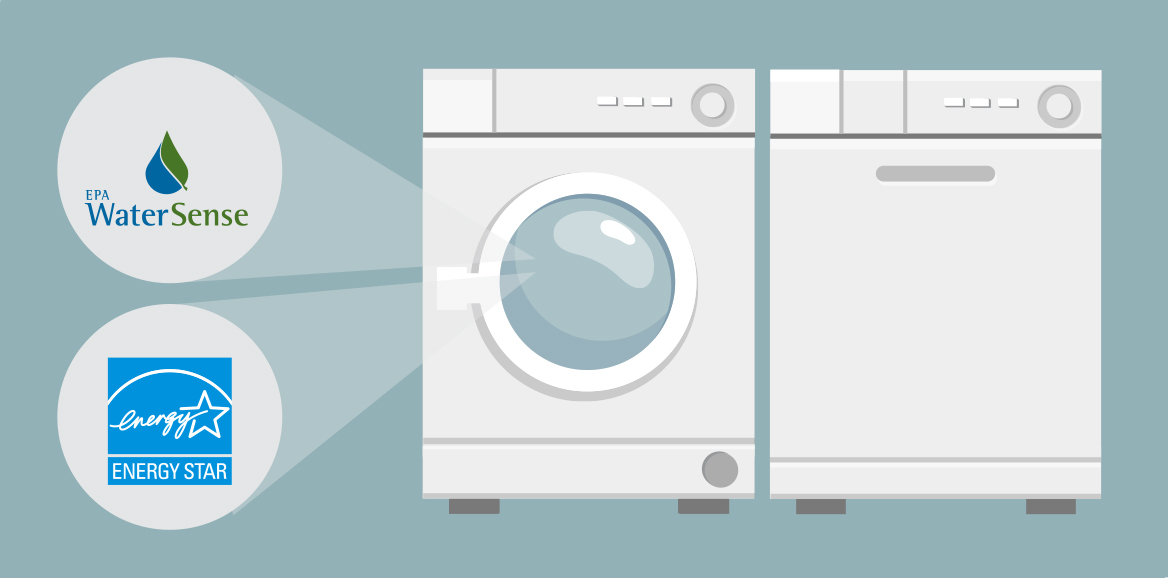 When shopping for a new dishwasher or a new clothes washer, be sure to look for one that is both water and energy efficient. It may cost the same or slightly more than a traditional model, but the savings in water and energy costs will benefit you in the long run.