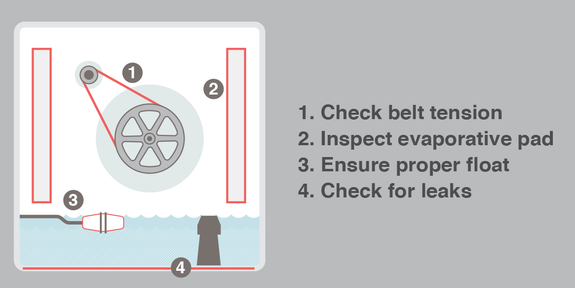 Check evaporative coolers periodically throughout the summer months.