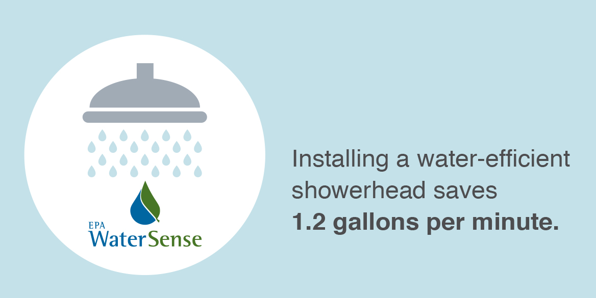 It starts with installing a water-efficient showerhead. This little step alone can save 1.2 gallons per minute. Next, take shorter showers. By reducing your shower time from 10 minutes to five, you can save as much as 12.5 gallons.